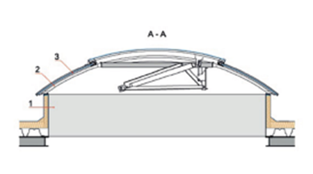 Widths range from 0.8 m to 6 m for curved continuous rooflights or from 0.8 m to 4.5 m for triangular continuous rooflights;