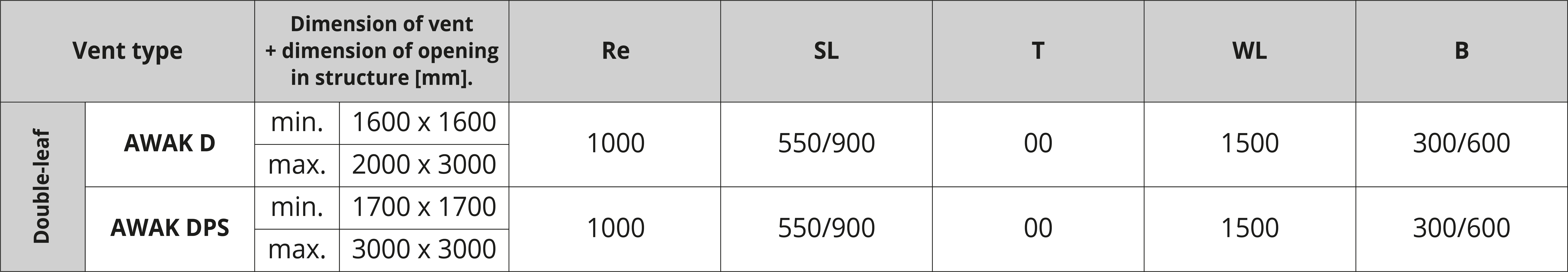 WL 1500 - wind load resistance equal to 1,500 Pa, opening time less than 60 s;